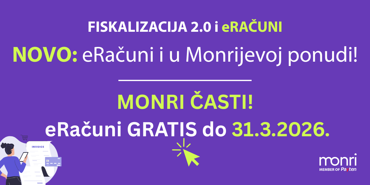 Fiskalizacija 2.0 donosi značajne promjene u načinu na koji poduzetnici izdaju i razmjenjuju račune, a jedna od najvažnijih novosti je obvezno slanje eRačuna. Kako bi proces bio što jednostavniji, Monri je u svoje blagajne integrirao Monri by Omnizon — moderno rješenje za eRačune koje omogućuje brzu, sigurnu i potpuno digitalnu razmjenu dokumenata. Cilj je svim korisnicima pružiti pouzdanu, fleksibilnu i zakonski usklađenu opciju bez dodatnih komplikacija i bez ugovorne obveze.