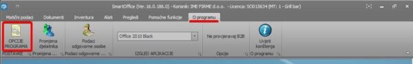 Prije svega, potrebno je provjeriti podatke korisnika putem: „O programu“ -> OPCIJE PROGRAMA:
