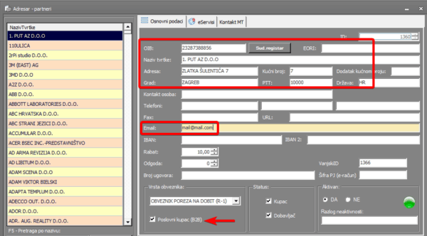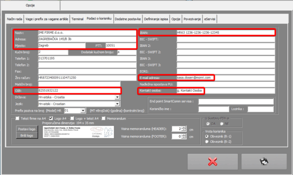 Svi podaci trebaju biti popunjeni, kako u OFFICE-u, tako i u POS-u: