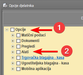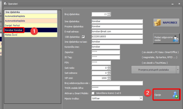 Čime nam se otvara novi prozor gdje odaberemo konobara (1) te pritisnemo Opcije (2):