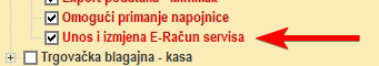 Te stavljamo kvačicu na „Unos i izmjena E-Račun servisa“: