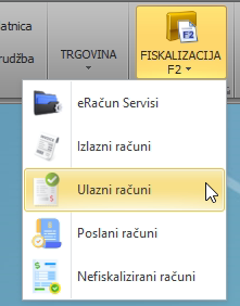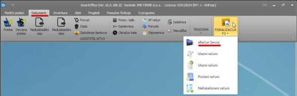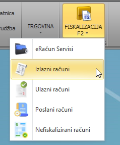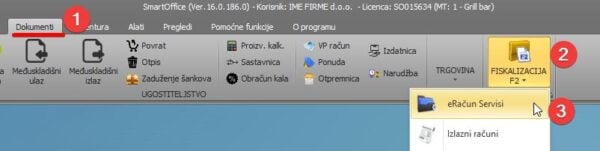Prije svega, potrebno je omogućiti pravo da korisnik može pristupiti opciji eRačun servisi pod modulom FISKALIZACIJA F2 koja se nalazi pod Dokumentima: