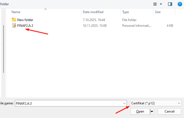 Klikom na „Dovuci certifikat“ otvara nam se prozor računala u kojem moramo pronaći i odabrati certifikat:
