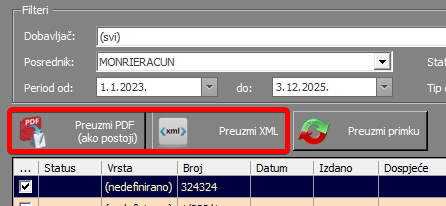 Račun je moguće preuzeti u PDF ili XML formatu: