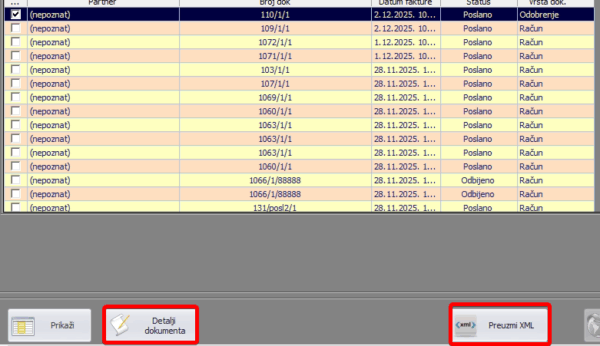 Odabrani račun moguće je pregledati ili preuzeti u XML formatu: