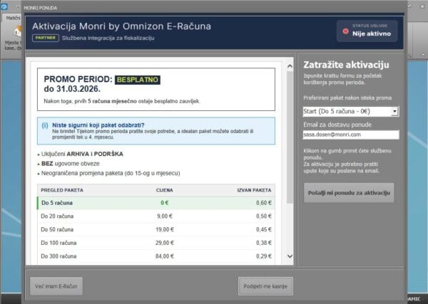 *ukoliko ste već dogovorili eRačun MONRI by Omnizon, ili već imate eRačun od drugog provider-a, molimo idite na Unos providera/pružatelja