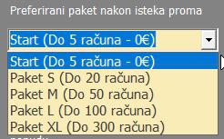 Sa desne strane nalazi se padajući meni gdje korisnici mogu odabrati preferirani paket: