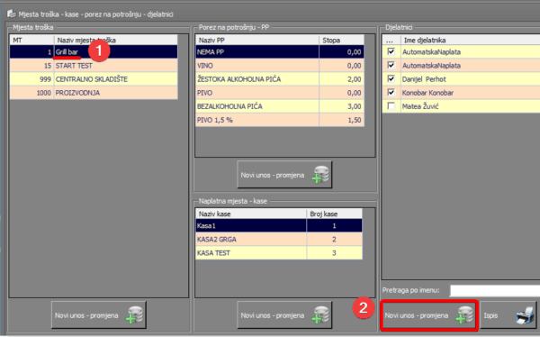 Gdje nam se otvara novi prozor u kojem moramo odabrati mjesto troška (1) te novi unos – promjena (2):