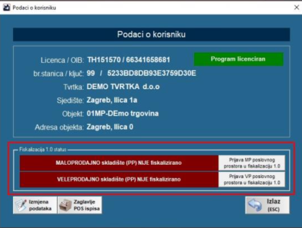U podacima o korisniku možete provjeriti imate li fiskaliziranu veleprodaju kako bi mogli izdavati VP račune fizičkim osobama (B2C).