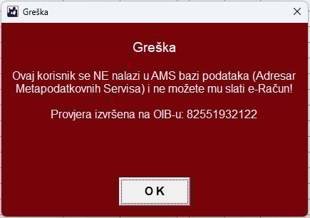Prilikom izdavanja eRačuna, u skladu sa zahtjevima fiskalizacije 2.0 koji se primjenjuju od 1. Siječnja 2026. Godine, sustav automatski provjerava je li kupac evidentiran u AMS bazi porezne uprave. Ukoliko kupac nije pronađen u bazi, izdavanje eRačuna nije moguće, te se u tom slučaju mora izdati standardni R-1 račun prema pravilima fiskalizacije 1.0., ukoliko je isto moguće