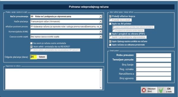 U načine plaćanja je dodano i način plaćanja “Transakcijski račun“, za korisnike koji nemaju otvoren takav način, a radi potreba fiskalizacije 2. Korisnicima koji već imaju otvoren taj način plaćanja, program neće otvarati novi