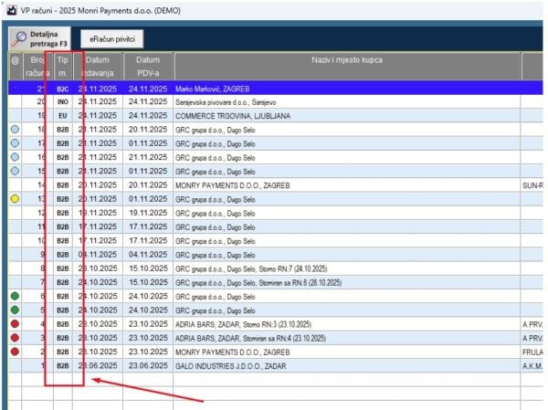 Novi stupac na pregledu računa: Na glavnom ekranu pregleda VP računa dodan je stupac “TIP Računa” koji jasno označava vrstu računa – B2B/B2G (za pravne osobe), B2C (za fizičke osobe) ili INO/EU (za strane poduzetnike).