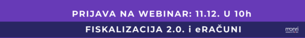 Kako bismo Vam dodatno olakšali prelazak na novi model fiskalizacije, pozivamo Vas na webinar kojeg će voditi Monrijev Business Analyst Ambrozije Letica, uz gošću iz Hrvatske obrtničke komore, Đurđicu Mostarčić.